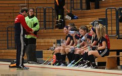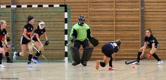 Etwas angespannt ging es zum letzten Spieltag der Hinrunde nach Schweinfurt, stand doch die mögliche Qualifikation für die bayerischen Endrunden an. Während das erste Spiel gegen HCS souverän mit 5:0 gewonnen wurde, war das zweite,entscheidende Spiel gegen Bayreuth zweigeteilt. Die erste Halbzeit ging mit 3:0 klar an Würzburg, in der zweiten Hälfe spielten unsere Mädels fahrig und etwas unkonzentriert. Obwohl der Sieg nie wirklich in Gefahr geriet, nahm der Bayreuther Druck stetig zu und es musste ein Anschlusstreffer hingenommen werden. Es wurde also nochmal spannend. Der 3:1 Endstand spiegelt nur bedingt das Leiden der Trainer und der mitgereisten Fans wieder. Aber egal. Die Endrunde war erreicht. Beim letzten und für Würzburg dritten Spiel war dementsprechend die Luft etwas raus. Das körperliche und hackelige Spiel gegen Erlangen war wahrlich kein Augenschmaus, obwohl es sich durch das langanhaltende 0:0 spannend gestalltete. Erst zum Schluß kullerte ein Ball der Würzburger zur erlösenden Führung über die gegnerische Torlinie. Doch dann nochmal Aufregung: TBE bekam nur Sekunden vor dem Abpfiff eine berechtigte Strafecke, welche aber abgewehrt werden konnte. Fazit der Tages: 3 Spiele, 3 Siege und die Endrunde erreicht - Glückwunsch Mädels.