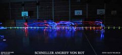 Neulich war es wieder einmal so weit. Eine Sporthalle in Würzburg wurde zur abendlichen Stunde aufwendig vorbereitet und ein unorthodoxes Spiel veranstaltet, welches aber – im Großen und Ganzen – fair über die Bühne ging. Zwar wurden einige kleinere Fouls übersehen, dennoch konnten die Teilnehmer mit bisher ungesehenen Spielzügen glänzen. Der Spaß stand eindeutig im Vordergrund. Viel zu schnell war das Vergnügen vorüber. Gemeinsam wurden verräterische (Leucht-)Spuren der Aktion beseitigt und die Spielerinnen und Spieler verschwanden in der kalten, klaren Nacht.